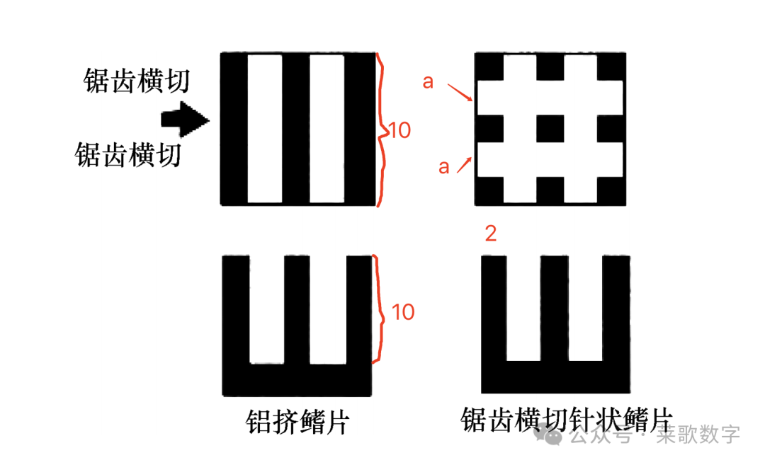 如果鋸齒切除的部分比鰭片厚度大時(shí),即a≥2,